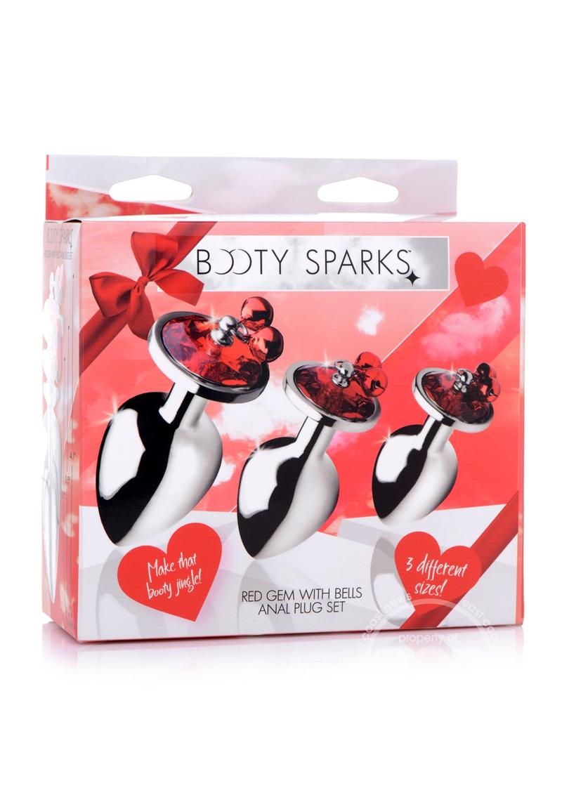 Booty Sparks Gemstones Red Jasper with Bells Anal Plug Set (3 pieces) - Red