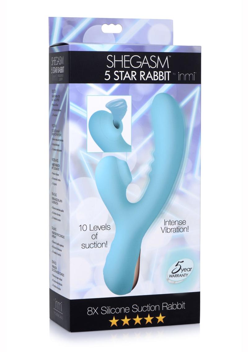 Inmi 5 Star 8X Silicone Rechargeable Suction Rabbit Vibrator - Teal