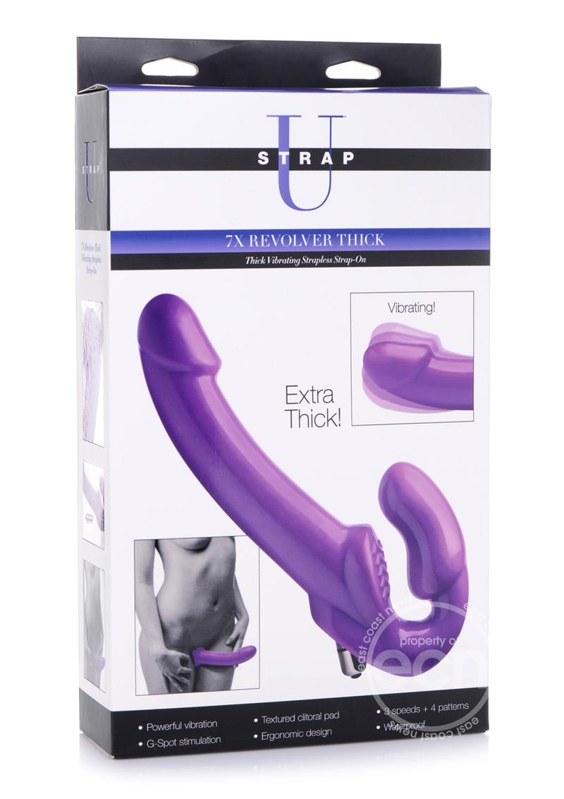 Strap U 7X Revolver Thick Vibrating Strapless Strap-On Dildo - Purple